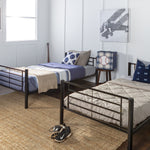 Our premium twin over twin bunk bed makes a great space-saving option for your kid’s room. Constructed with a sturdy steel metal frame and supports slats with no box springs needed. The sleek and modern design make it easy for you to incorporate it with your current home décor. A ladder provides access to the top bunk and can be attached on either end of the bunk bed, giving you the flexibility to fit it into just about any small space.